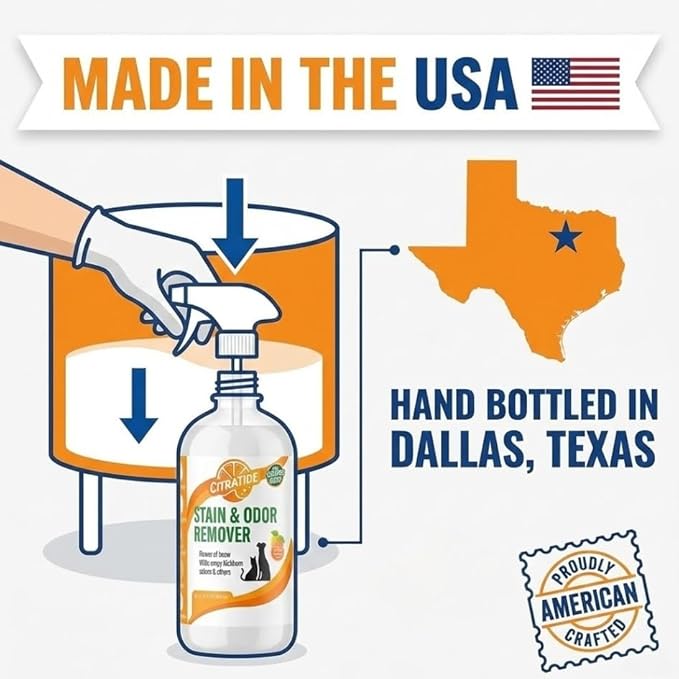 Pet Stain & Odor Remover Spray – Citrus Powered, Non-Toxic, Safe for Pets & Kids, Multi-Surface Cleaner for Carpet, Upholstery, Hardwood & More – USA Made Odor Eliminator