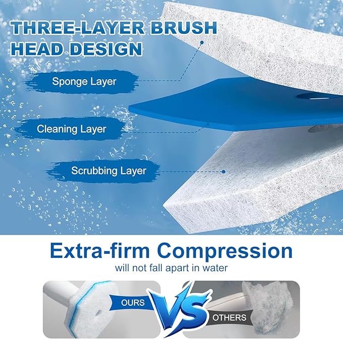 - 【5X Powerful Stain Removal, No Scratch】 Featuring an exclusive upgraded formula and thick cotton sponge, delivering up to 5 times the scrubbing power. Preloaded with 2X cleaner, it creates rich, ocean-scented foam to eliminate 99.9% of tough stains, including rust, limescale, and hard water buildup, leaving your bowl sparkling clean without damaging the glaze