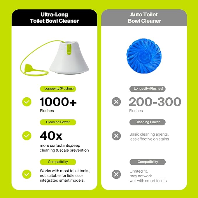 - Long-Lasting Performance: Each block lasts for 1,000+ flushes, keeping your toilet clean with less effort.