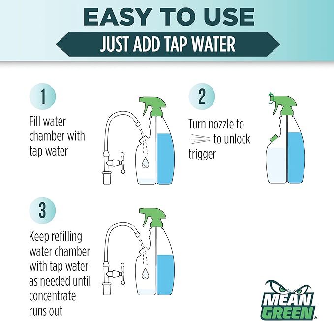 - HELPS REDUCE WASTE – No additional purchases required—just refill with tap water. Each concentrate bottle replaces multiple single-use cleaners, helping reduce plastic waste and storage space.