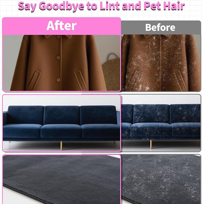 - 【Effortless Cleaning with Static Electricity Technology】 Experience the power of electrostatic technology with pet hair removal tool. It easily lifts lint, pet hair, and dust with gentle left-to-right strokes, eliminating the need for tedious rolling or struggling with stubborn debris. Enjoy hassle-free cleaning sessions!
