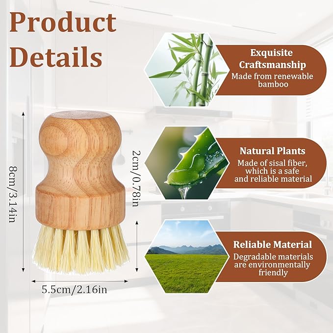 - Suitable Size: Each natural sisal bristle dish brush measures approximately 3.14 x 2.16 in, wooden brush for dishes compact enough for easy storage yet large enough to handle tough cleaning jobs on pots, pans, and kitchen surfaces.small and compact, light in weight, portable for you to hold and use