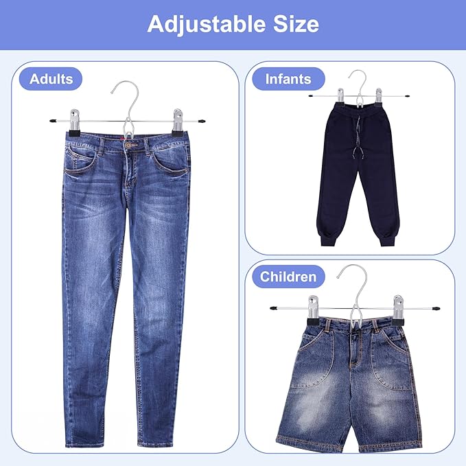 - 【Adjustable Clips】The clips on these pants racks can be adjusted to accommodate a variety of clothing sizes, the bra hanger is equipped with non-slip rubber tips, and the shorts hangers protect your clothing from damage while ensuring a secure hold