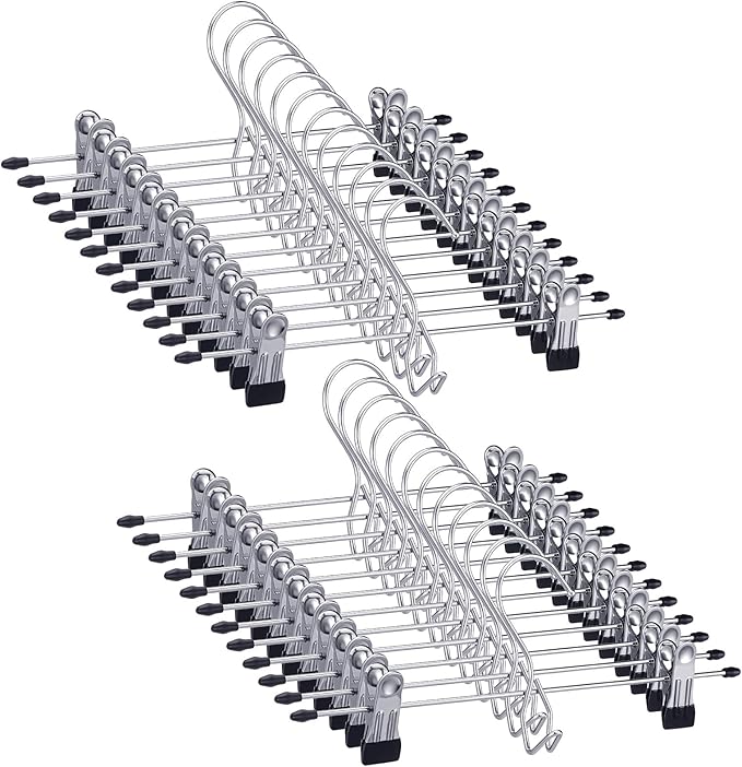 YBEATY 24PCS Skirt Pants Hangers with Clips Space Saving Stackable Hanging Closet Organizer Heavy Duty Adjustable Clothes Storage College Dorm Room Supplies Decor for Shorts Jean Towel Trouser Sock
