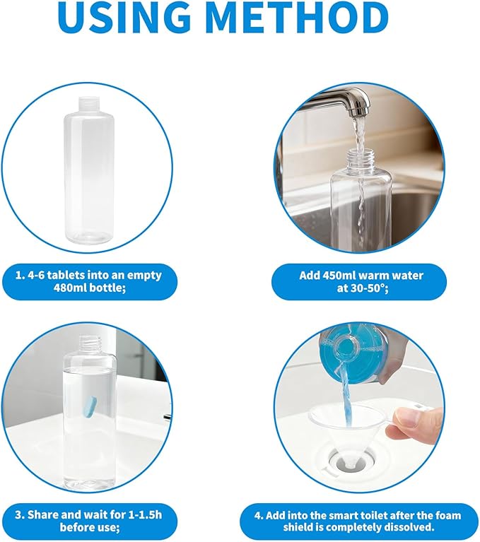 - ✅Total 12pcs, 6 tablets can be melted to 1 bottle, for a total of 2 bottles. Each bottle can flush approximately 150 times