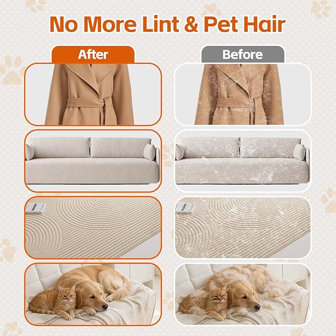 - 【Static Magic-Lift Hair in Seconds】: Tap into electrostatic power, just gently glide side-to-side, the pet hair remover glove can easily lifts embedded lint, pet hair and dust on couches, carpets, and clothing. No harsh rubbing or sticky rollers needed! Say goodbye to cleaning headaches and enjoy hassle-free pet cleaning with our pet hair remover!