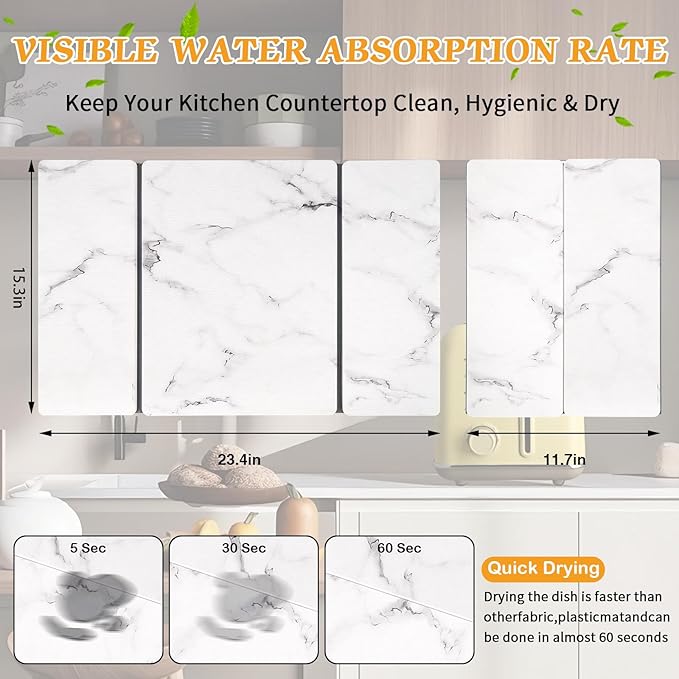 - 【FOOD-GRADE MATERIAL】This kitchen countertop stone drain mat is made of natural diatomaceous earth and PVC, making it safe for food contact, giving you peace of mind during daily use
